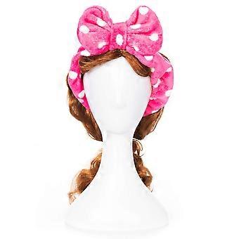 Makeup Headband Soft Flannel Spa Headband with Cute Bowknot Keeps Hair Out Rose Red Dot