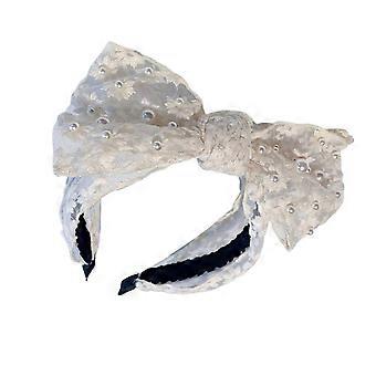 Pearl Headband with Knotted Lace and Faux Pearl Accent, Elegant Hair Accessory for Women, White