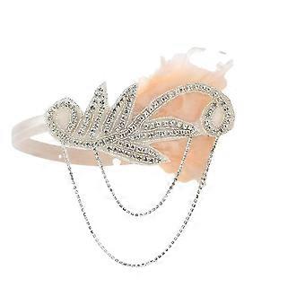 1920s Vintage Headband with Feather Crystal Accent Gatsby Style Bridal Wedding Hairpiece