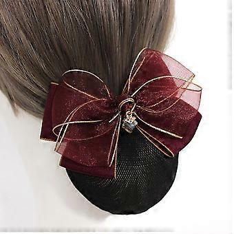 Coffee Hair Bun Cover Net Snood with Elegant Bow Barrette Clip for Professional Women