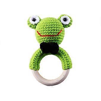 Crocheted Baby Rattle with Wooden Ring Handmade Frog Toy for Newborn Sensory Play and Motor Skills