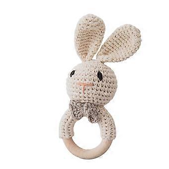 Baby Wooden Rattle Rabbit Crochet Teething Toy Handmade Natural Wood Ring for MultiSensory Play