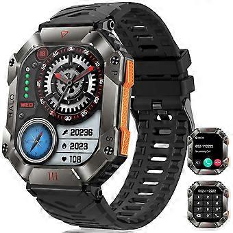 Rugged Military Smartwatch for Men with Bluetooth Calling, Long Battery Life, Waterproof, Flashlight and Compass