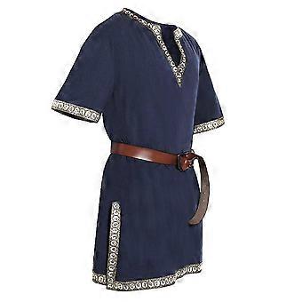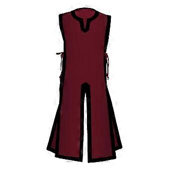 Men's Medieval Tunic Costume Viking Cosplay Outfit Wine Red Long Sleeve Renaissance Warrior Robe XL