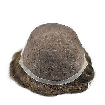 Mens Toupee Human Hairpiece French Lace PU Skin Natural Hairline 8x10 Medium Brown Wig