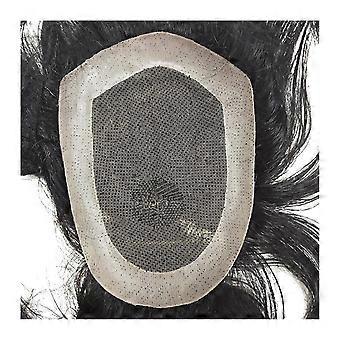 Mens Toupee Swiss Lace Hair Replacement System Natural Black Human Hairpiece for Men 7x9 #1B