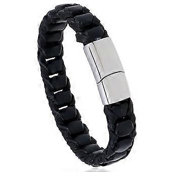 Stainless steel magnetic buckle leather bracelet - Stainless steel magnetic buckle woven cowhide bracelet - Hand-woven cowhide bracelets