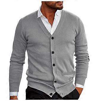 Men's Knitted Cardigan Winter Warm VNeck Button Down Soft Knit Sweater Long Sleeve Grey M