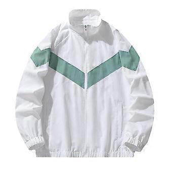 Men's White Varsity Baseball Jacket 4XL, Sporty Patchwork Design, WrinkleResistant Fabric