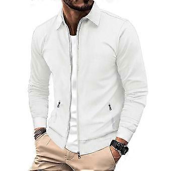 Men's Zip Up Hoodie Slim Fit Casual Jacket with Multiple Pockets Breathable White Size L