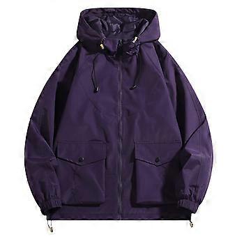 Men's Hooded Jacket with Zip Winter Outdoor Warmth Casual Sports Hoodie Coat Dark Purple M