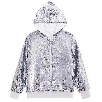 Men's Bomber Jacket with Hood Silver XXL, Metallic Glitter Party Sequin Baseball Style