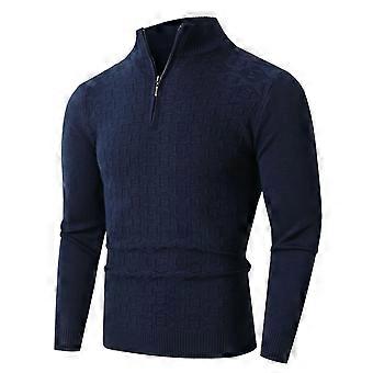 Men's Winter Sweater 1/4 Zip Turtleneck Pullover Thermal Knit Jumper XXL Navy Warm