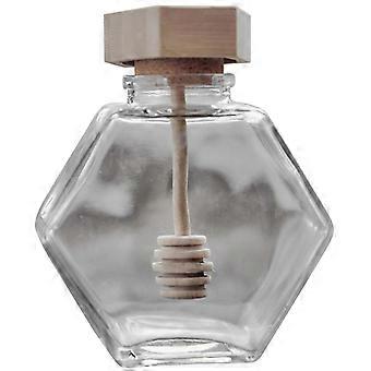 Glass Honey Jar with Bamboo Lid and Dipper, NoDrip Hexagonal Honey Dispenser for Syrup and Jam