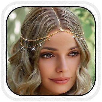 Boho Head Chain with Rhinestone Forehead Headband Vintage Gold Hair Accessories for Women Wedding