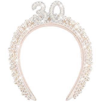 30th Birthday Crown with Handmade Pearl Headband for Women, Elegant Rhinestone Tiara, White