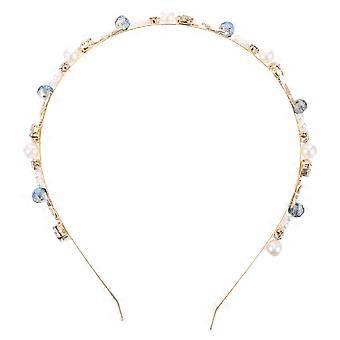 Sparkly Rhinestone Headband with Crystal Flowers, Blue Double Design for Wedding and Party