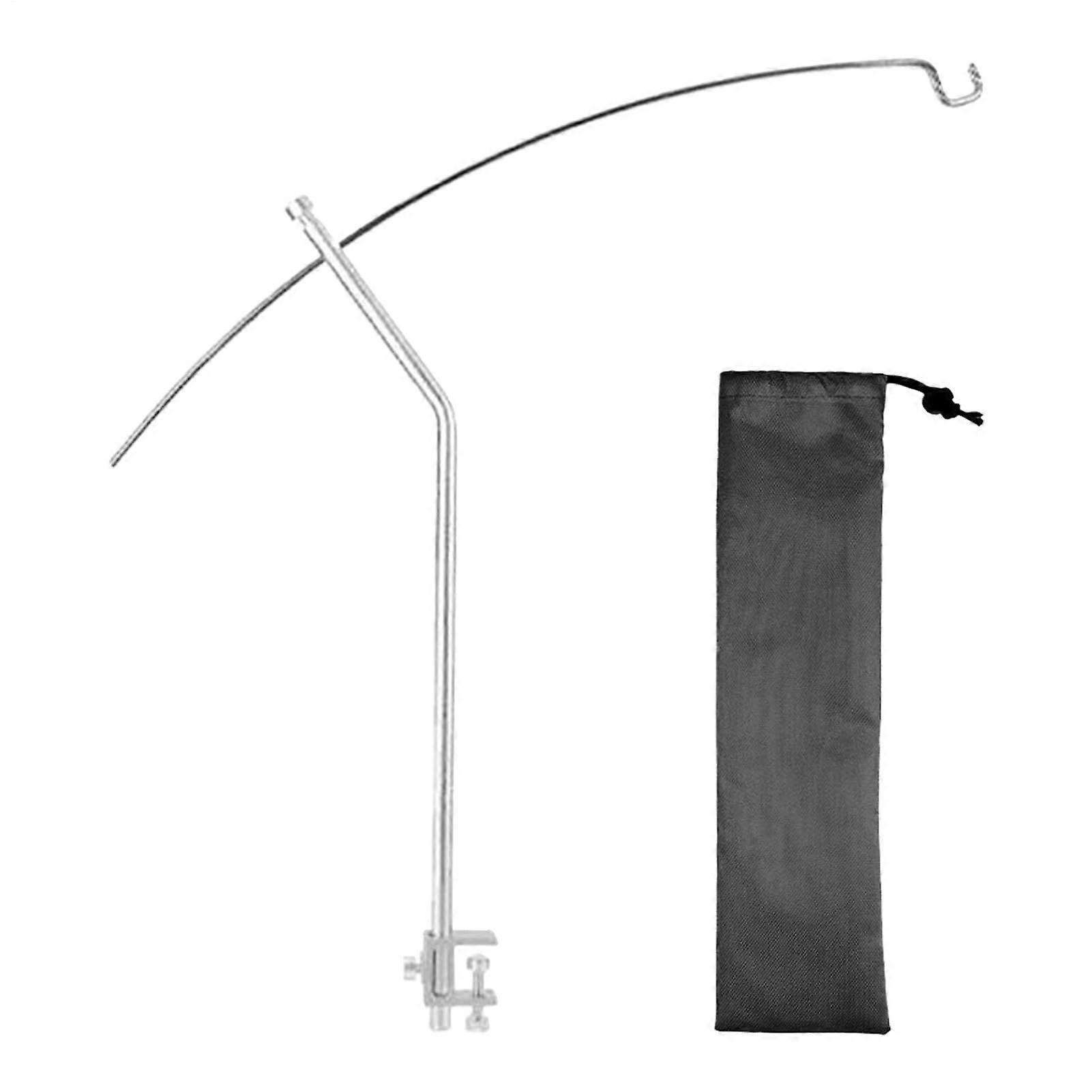 Foldable lamp pole, light holder, camping stand, adjustable portable support for travel, hiking, fishing, picnic, silver.