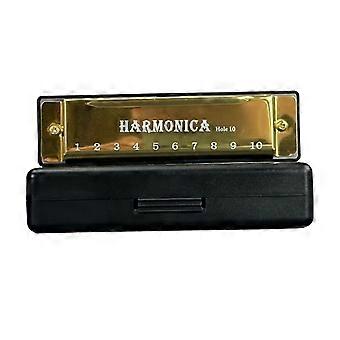 10 Hole Tremolo Harmonica in C Key Gold Professional Tuning Rich Sound Durable Metal Build