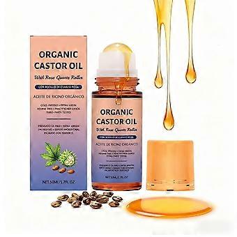 Organic Castor Oil Roll On with Rose Quartz for Hair and Skin, Cold Pressed, Hexane , 1.7 fl oz