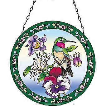 Hummingbird Stained Glass Window Hangings, Green Acrylic Suncatcher with Hummingbirds and Flowers Pattern for Window Decor