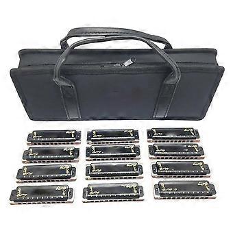 Diatonic Blues Harmonica Set 12 Keys Loud Clear Tone Beginner to Professional with Case Black