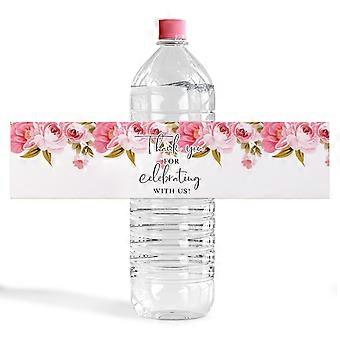 Wedding Water Bottle Labels 50pcs Pink Rose Floral Wraps Thank You Stickers for Party and Shower