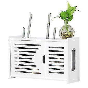 WiFi Router Shelf Wooden Wall Mounted Storage Box with Cable Concealment and Single Door – White