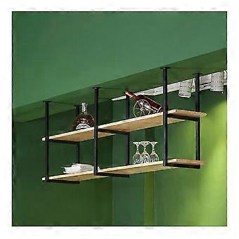 Industrial Wall Shelf Solid Wood and Iron 2 Tier Hanging Storage Rack for Kitchen and Bar
