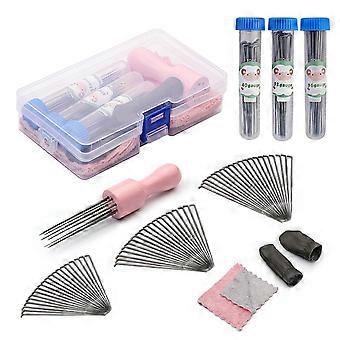 Felting Needle Kit with Wooden Handle, 3 Sizes Needles, Finger Protection and DIY Wool Supplies Pink