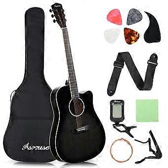 Full Size Acoustic Electric Guitar for Beginners with Built‑in Speaker, 4‑Band EQ, Black 41'