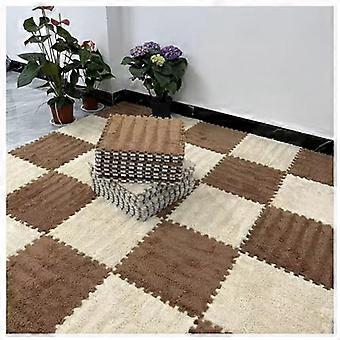 Interlocking Plush Carpet, 10-Piece Square Foam Carpet Tiles, Soft Non-Slip Mats, Coffee & Apricot, Unit Size