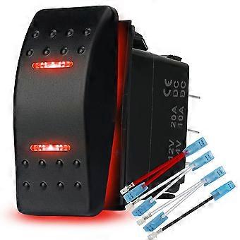 Waterproof Rocker Switch 12V 24V DPDT 7 Pin with Red LED for Marine Boat Car Truck RV ATV