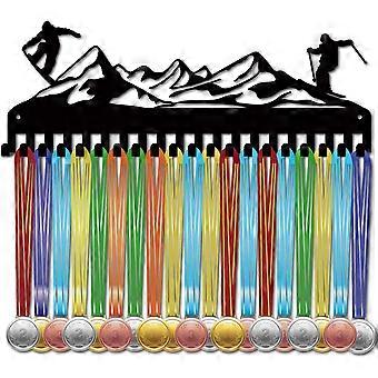 Iron Medal Holder Frame 20 Hooks Medals Display Hanger Rack with Screws Black Skiing 150x400mm Hole: 5mm