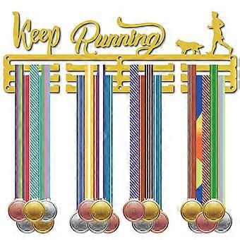 Iron Medal Holder Frame Medals Display Hanger Rack with Screws Rectangle with Keep Running Dark Goldenrod 13.9x40cm