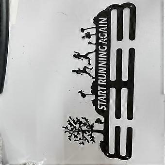 Iron Medal Holder Frame Medals Display Hanger Rack with Screws Rectangle with Word START RUNNING AGAIN Electrophoresis Black 150x400mm