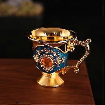 Retro Aluminum Goblet Handcrafted Alloy Cup for Tea and Liquor with Golden Orchid Design
