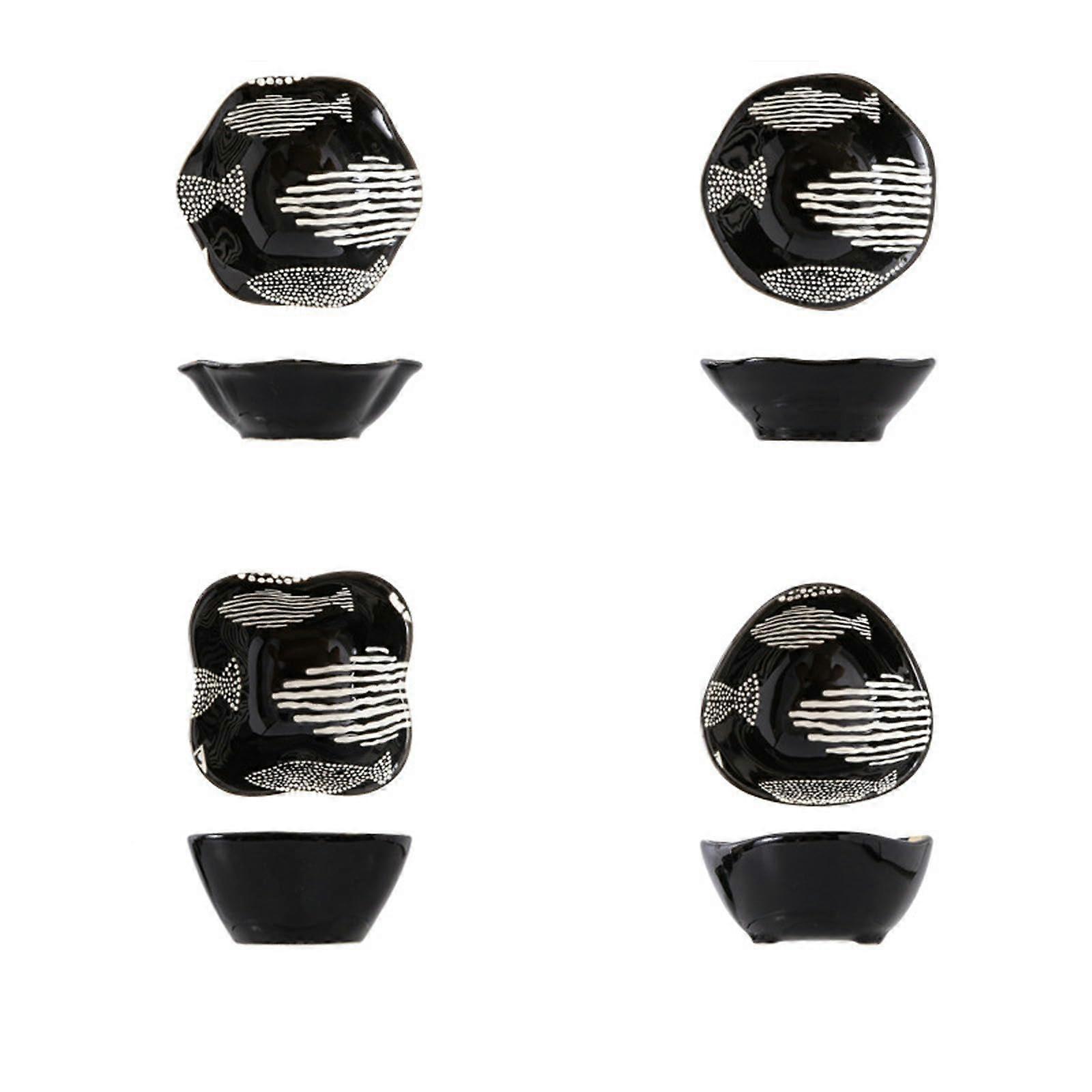 Japanese Relief 4-Piece 3D Under-Glaze Ceramic Dish Set, Black Multi-Fish Soy Sauce Server for Small Dishes