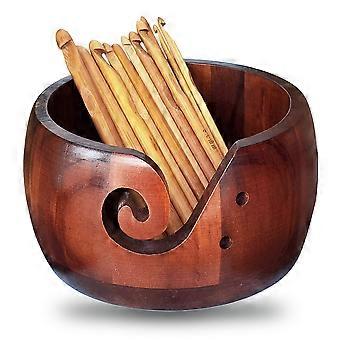 Wooden Yarn Bowl with 12 Bamboo Handle Crochet Hooks, Handmade Rosewood for Knitting and Crochet