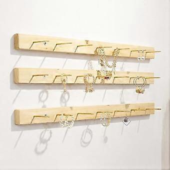 Wooden Wall Mounted Jewelry Organizer with Hooks for Necklaces Bracelets Rings 3pcs 90cm