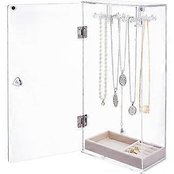 Rotatable Necklace Holder Organizer Acrylic Jewelry Organizer with 24 Hooks Clear Dust-proof Jewelry Storage Case with Velvet Tray for Long Necklaces