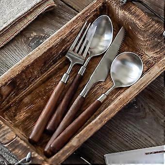 18/10 Stainless Steel Flatware Set for 4 with Ergonomic Wood Handle, Dishwasher Safe 16Piece