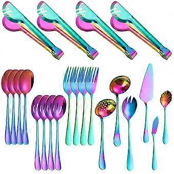 304 Stainless Steel Rainbow Spoon and Chopsticks Set with Ergonomic Curved Handle and Colorful Enamel Finish