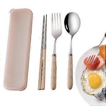 3PCS Stainless Steel Cutlery Set with Beech Handles, Portable Travel Utensils for Picnic Camping