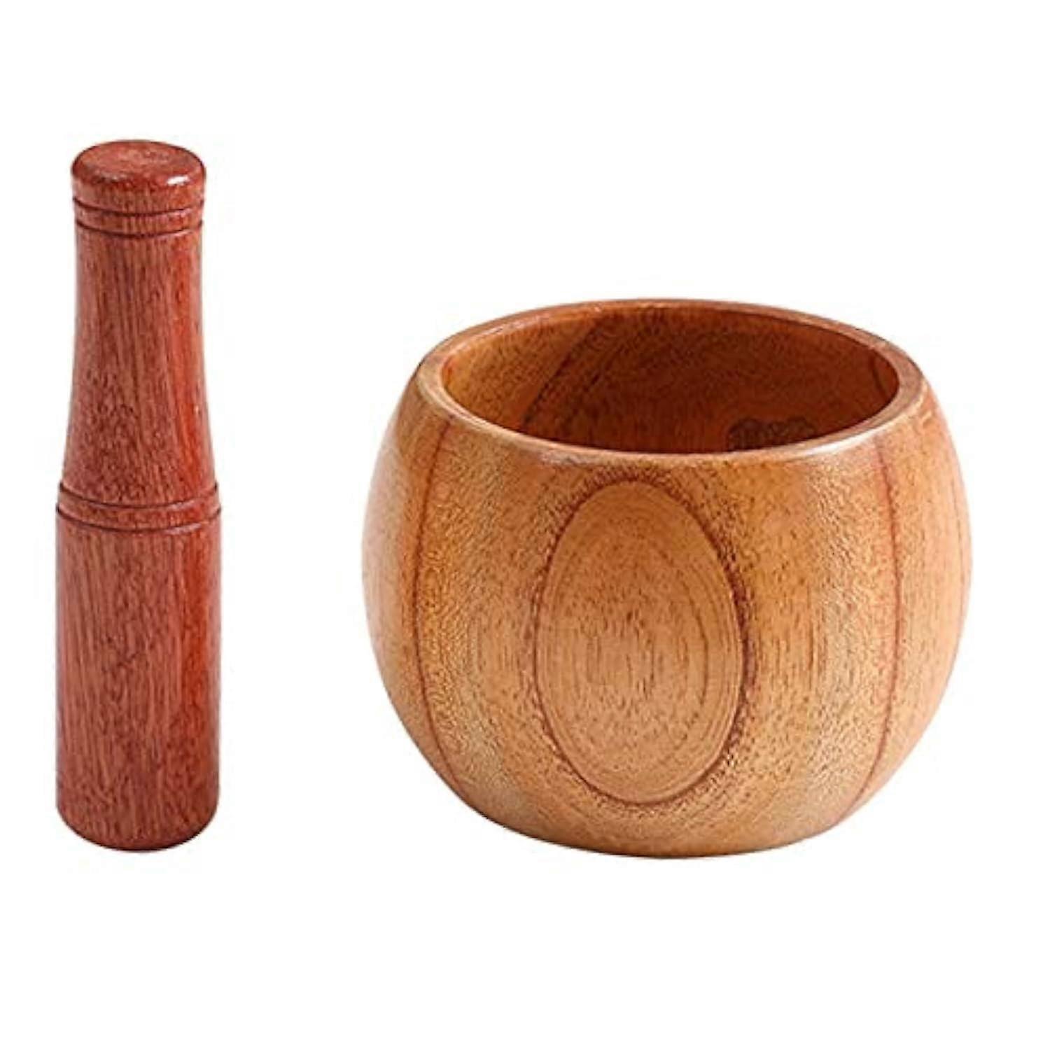 Natural Wood Pestle and Mortar Bowl Set for Kitchen Use