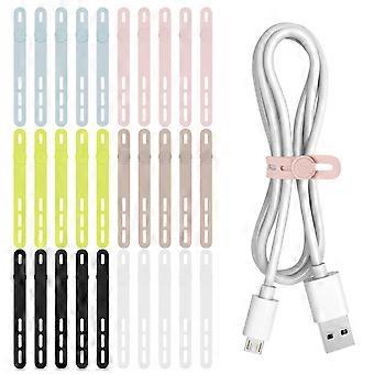 30Pcs Silicone Cable Ties with Adjustable Locking Buckle, Reusable MultiColor Cord Organizer Straps
