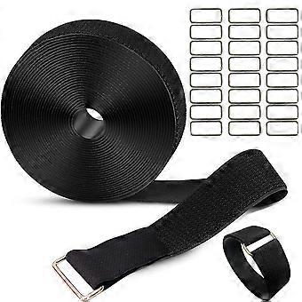 1.5in x 32ft Hook and Loop Cable Straps Roll with 30 Metal Buckles, Adjustable Reusable CuttoLength Cord Organizer