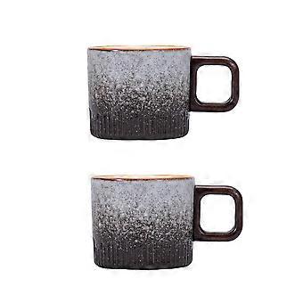 Espresso Cups Set of 2, 2 oz Ceramic Demitasse Cups with Wooden Handle, Vintage Stripe Design, Gray