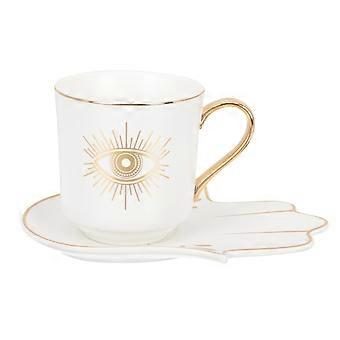 Evil Eye Mug with Saucer, 6.7oz Ceramic Coffee Cup, Turkish Blue Protection Tea Cup Set White