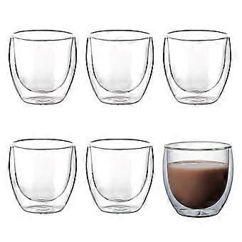 6pcs Double Wall Espresso Cups 80ml HeatResistant Glass Coffee Mugs Set for Espresso and Tea